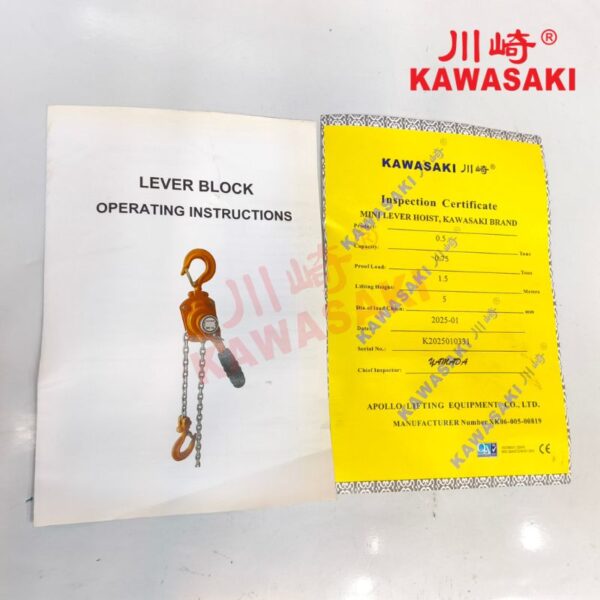 Hơn nữa, pa lăng xích lắc tay mini 500kg Kawasaki chuẩn hàng chính hãng Kawasaki do nhà máy APOLLO sản xuất theo công nghệ Nhật Bản với tiêu chuẩn ISO 9001:2000. Và được Kawasaki Lift nhập khẩu theo đường chính ngạch. Và có đầy đủ CO, CQ về nguồn gốc xuất xứ và chứng chỉ xuất xưởng. Cho nên chất lượng sản phẩm được đảm bảo ở mức ổn định. Phù hợp với những công việc nâng hạ cần tính bền bỉ như điện lực, sửa chữa ô tô,…
