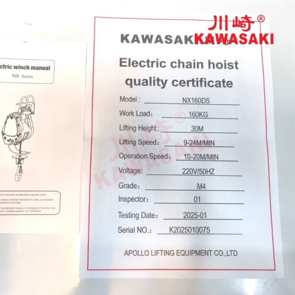 ToggleThông số kỹ thuật của tời điện treo 160kg NX-160DS Kawasaki