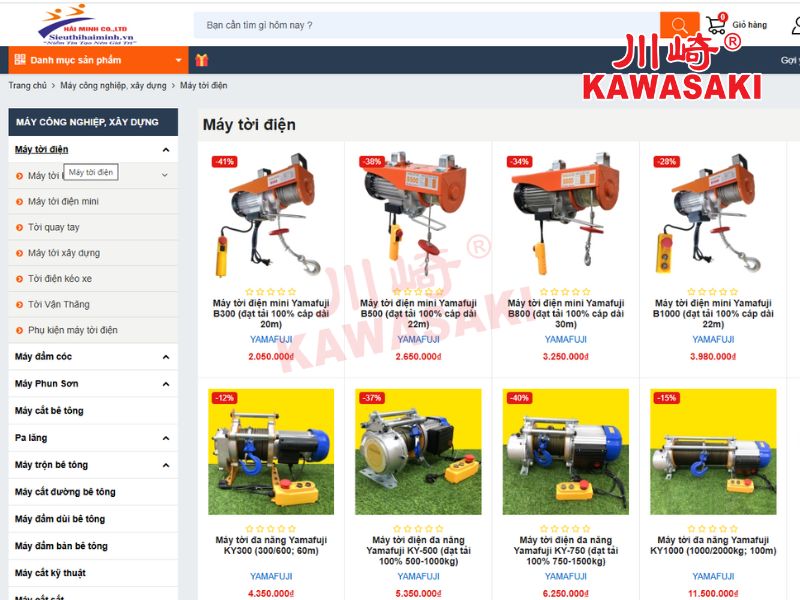 Siêu thị Hải Minh (hay còn được biết đến với tên gọi Điện máy Hải Minh) cũng là địa chỉ mua tời điện tại Hà Nội được nhiều người ưa chuộng. Tại đây, khách hàng có thể dễ dàng tìm thấy nhiều dòng máy tời điện đến từ các thương hiệu nổi tiếng như Kio Winch, Yamado, Kensen,…. Những sản phẩm này đều được đánh giá cao về hiệu suất hoạt động ổn định, độ bền vượt trội và khả năng vận hành linh hoạt trong nhiều môi trường khác nhau.